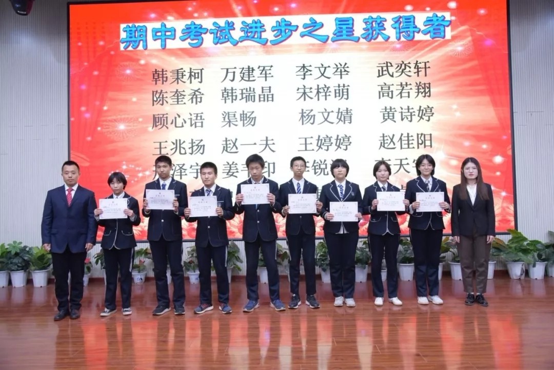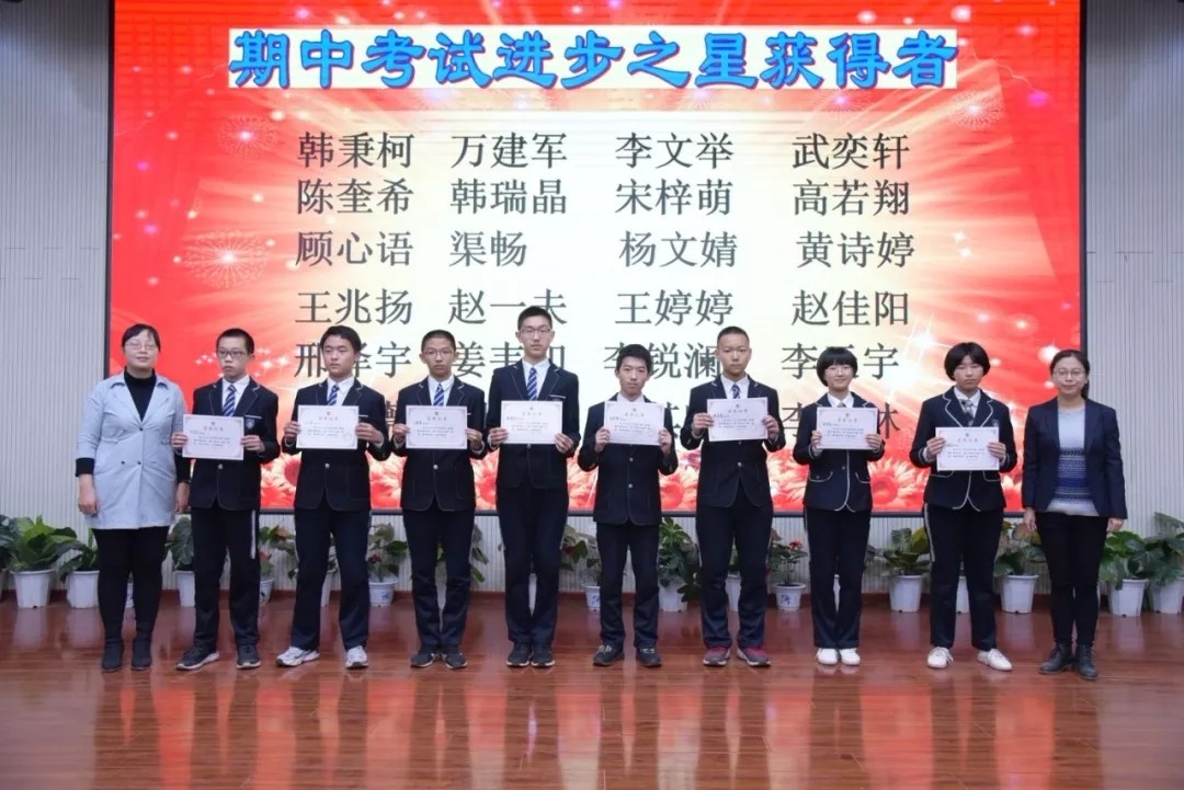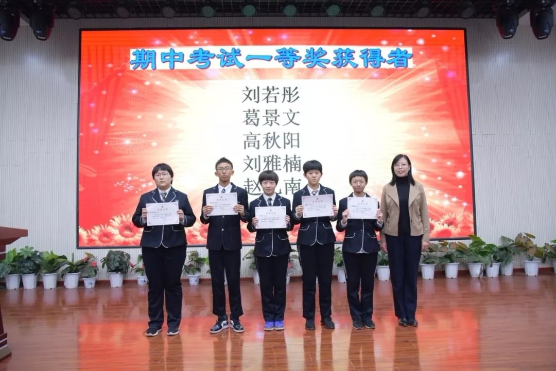 大会由年级主任杨萍老师主持。樊茹副校长、教务处常乐主任参加了会议。会议分别对单科状元、进步之星、年级优秀学生进行颁奖,场内响起此起彼伏的掌声,气氛十分热烈。