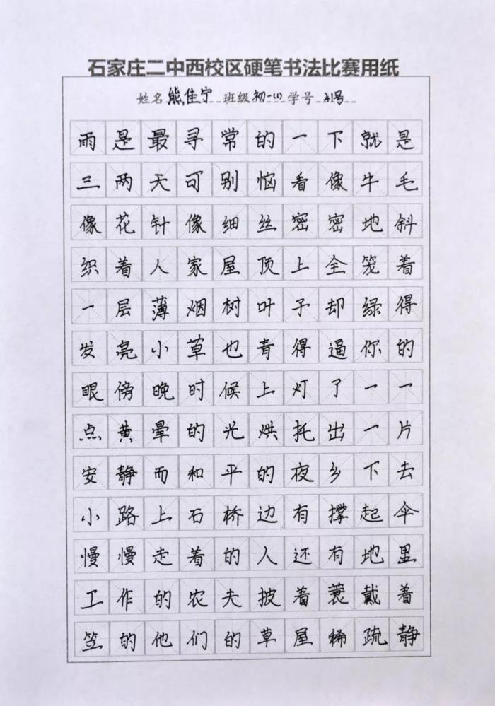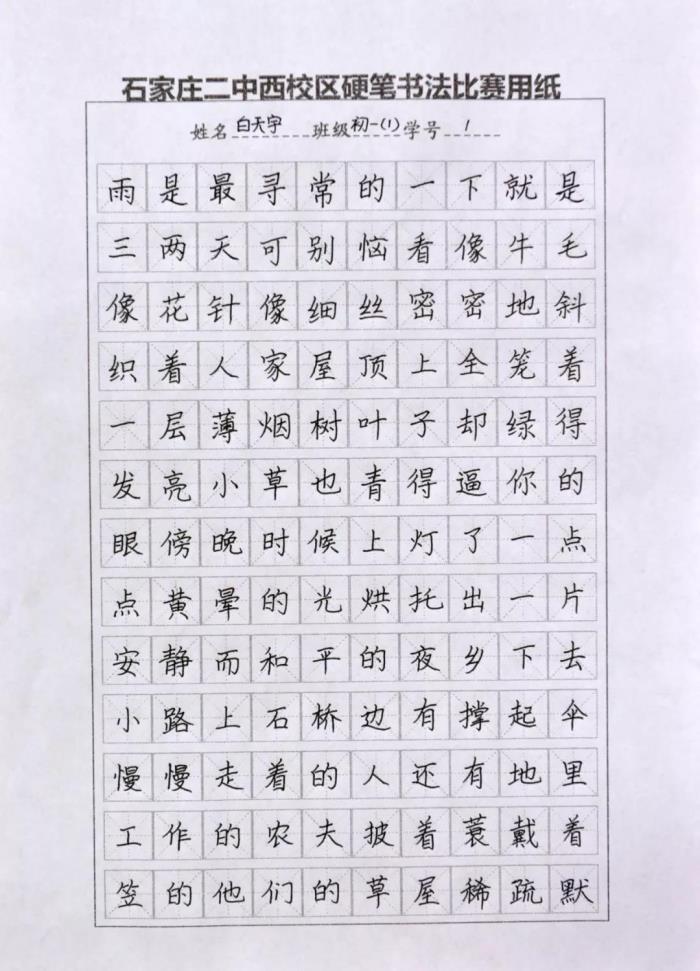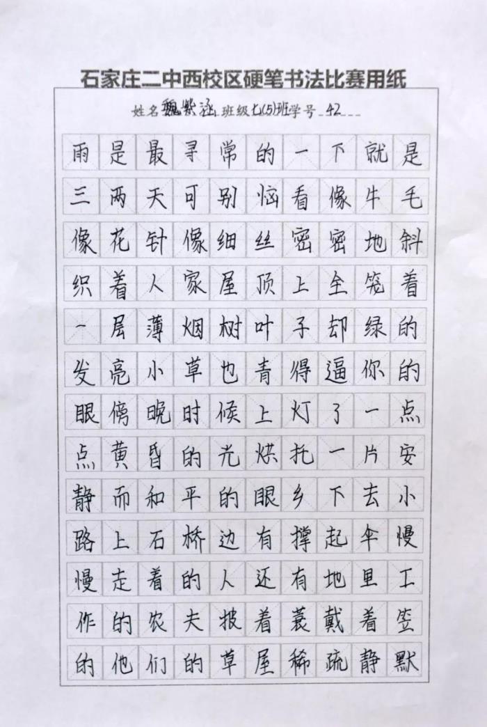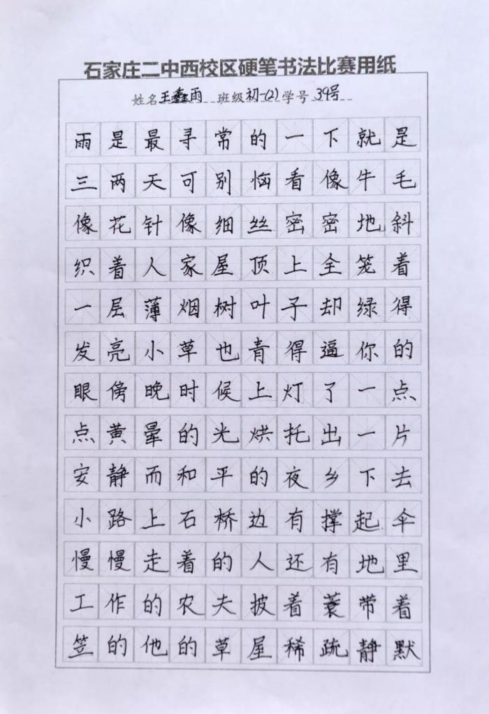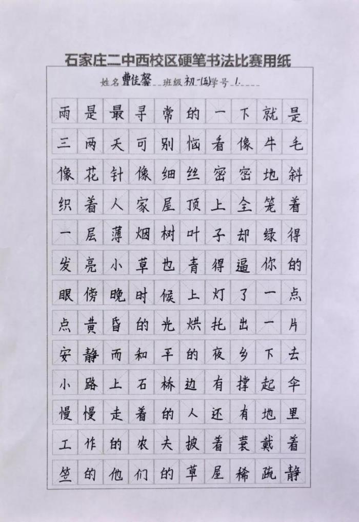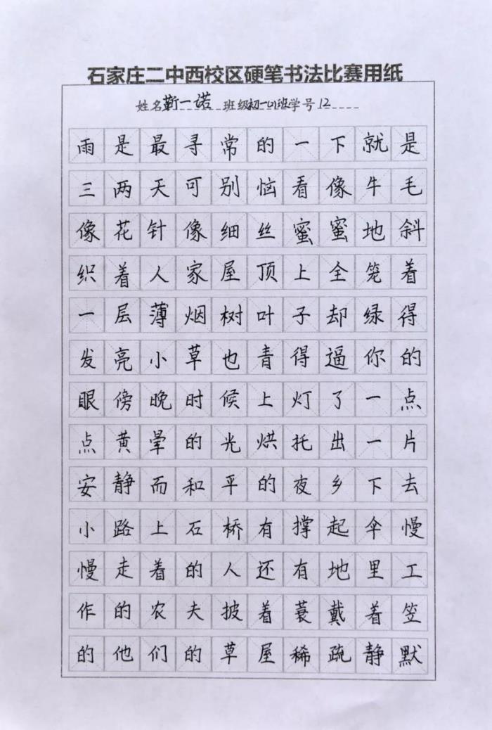 沐浴着冬日的暖阳,石家庄二中西校区初一年级迎来了“规范书写 赢在起点”硬笔书法书写大赛。