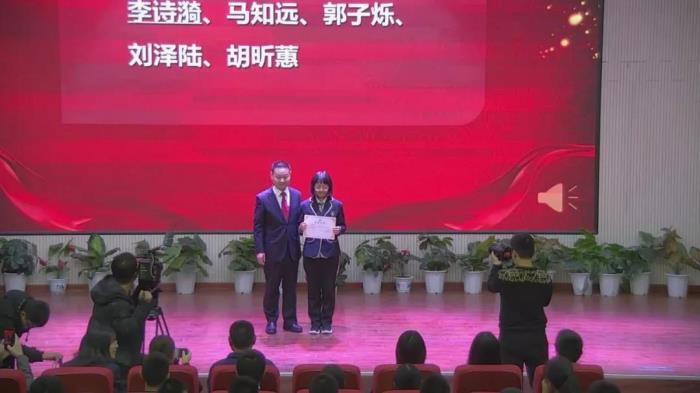 会议在庄严的国歌声中拉开序幕,出席会议的领导和各班班主任为在本次考试中取得优异成绩和较大进步的同学颁奖。台下的同学们也从获奖同学的身上汲取榜样的力量,鼓风扬帆迎接下次的挑战。