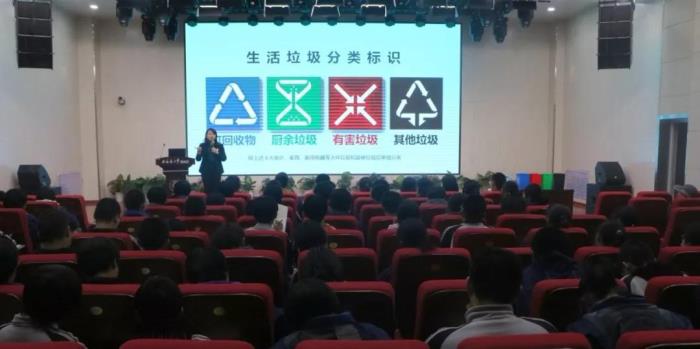12月5日下午,学校举行了“生活垃圾分类”专题培训活动,我校学生代表和餐厅、宿管等后勤人员参加了活动。环保宣教老师钱京京结合实际生活阐述了垃圾分类的重要性,并详细讲解生活垃圾的分类方法,还就具体操作问题进行了现场演示。