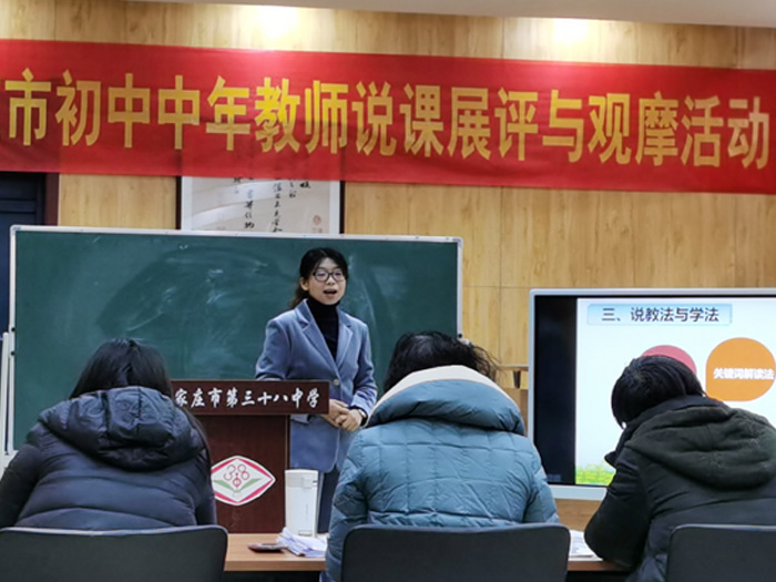 近年来,“说课”这一教研形式已成为提高教师素质的一条有效、简捷的途径。参加本次说课比赛的八位老师都做了精心的准备,他们从教材分析、学情分析、教学重难点、教学过程设计与实施、教学评价与反思等多个方面阐述了自己的课堂教学设计。无论从撰写说课稿还是制作演示文稿上都下了很大功夫,并利用多媒体来辅助讲演,提升说课的效果。他们挥洒自如、激情澎拜、条理清晰、富有逻辑,给大家留下了极其深刻的印象,得到了评委和听课教师的一致好评。