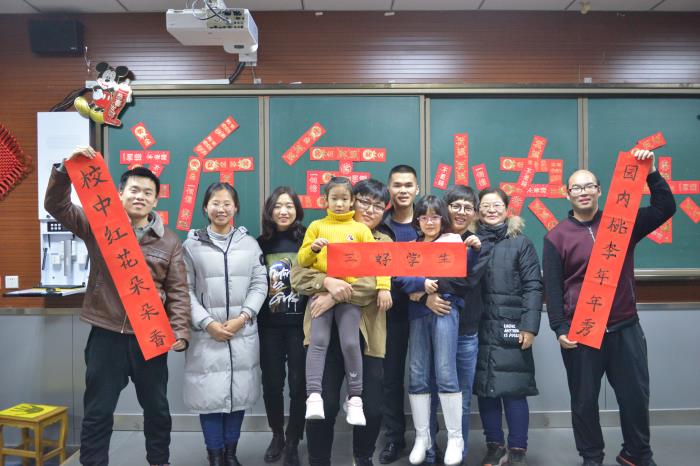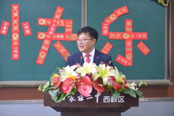 张永泽副校长激情致辞,在过去的一年,我们取得了骄人的成绩,离不开年级主任、班主任老师的辛劳付出,师生在班级温馨的大家庭里,教学相长,相依相伴,并向同志们和积极帮助支持学校工作的家人们表达了诚意感谢和节日祝愿。