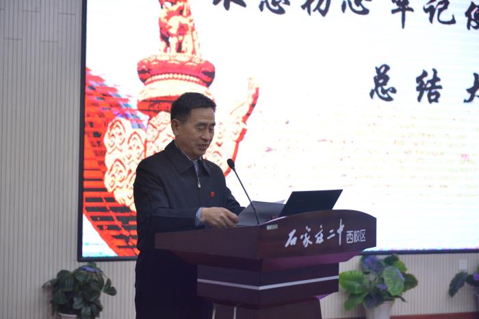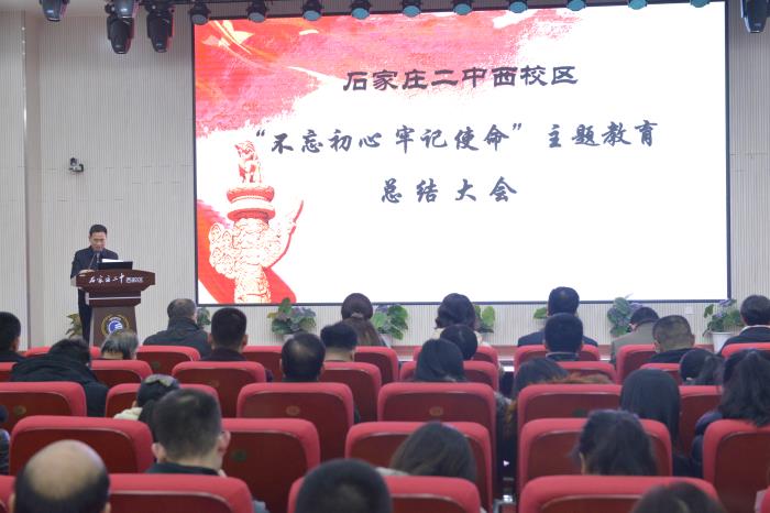 1月16日下午,石家庄二中西校区召开“不忘初心、牢记使命”主题教育总结大会,深入学习贯彻中央、省委、市委及教育工委主题教育总结大会精神,认真总结主题教育的成效、做法和经验,并对下一步工作进行部署,不断推动主题教育走深走实。学校党总支书记陈怀彦做总结讲话,市委第一巡回指导组陈丽到会指导,会议由党总支副书记孙福山主持。