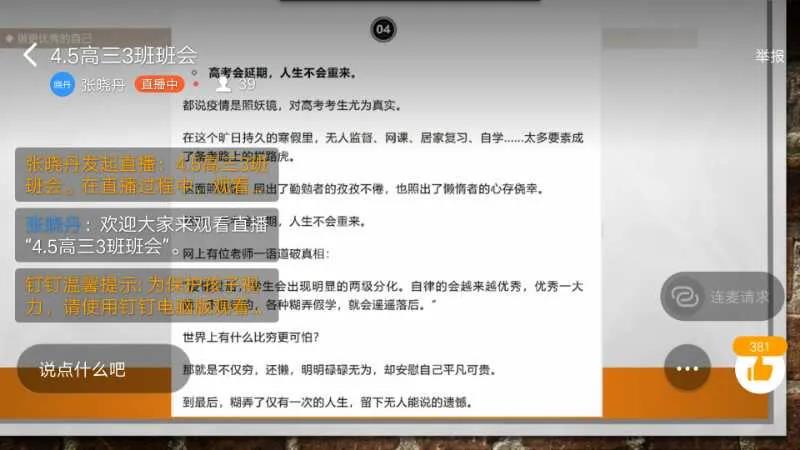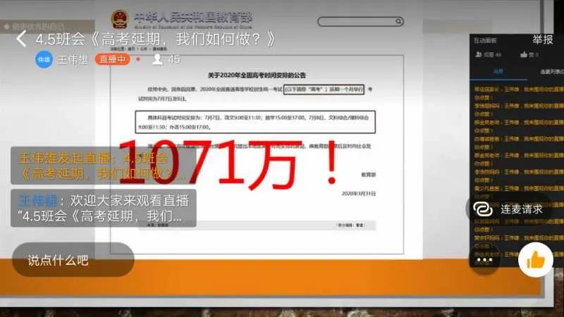 在班会上,班主任们从心态、自律、时间、健康四个角度帮助学生们正确认识和接受高考延期所带来的影响,以平和的心态面对环境的变化,同时提出了应对高考延期的一些具体措施,例如引导学生尽快调整复习计划、合理利用好高考延期所带来的一个月时间、充分夯实基础、有余力的学生制定自主复习计划等等。