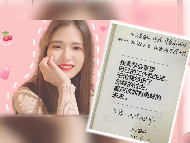 “以年为单位做坚持”“教育切忌急躁”“教师的成长要感谢学生”“所谓的站住脚,都是奋斗出来的”“实干”是最大的情商……每一字一句都是期盼、都是祝福,对于一个新踏入教育行业的职场小白来说,遇到愿意站在前方引领、在身旁教导的前辈是如此幸运。幸得孙校长赠书《早起的奇迹》并亲书寄语“个性是奋斗的产物,你奋斗的越成功,就越自由,就越能发挥个性。与您一同学习进步”。书目随机赠送但是当我打开之后,发现寄语与我格外的符合。诚然正如孙校长所说,想要有足够宽的平台展示个性,就要有相应的能力和成就,这使我越发期待未来的舞台,越发想要努力表达自己、展示自己、成就自己。