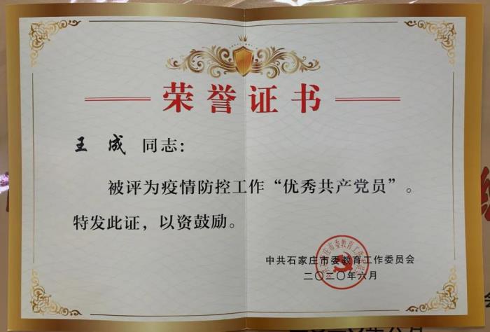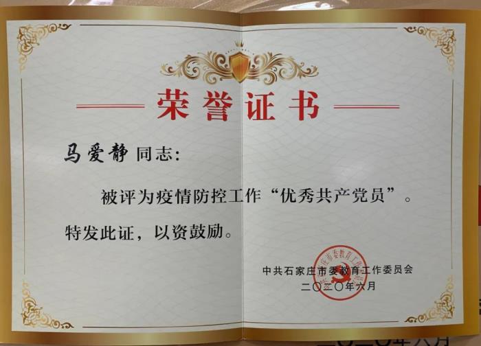 初三党支部被授予”疫情防控工作先进基层党组织“