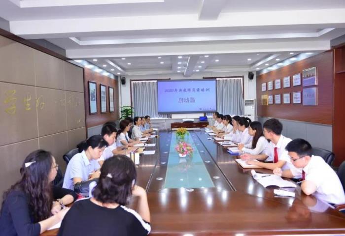 8 月21日上九点,在教科处杨俊巧主任的主持下,我校 2020 新教师培训启动仪式正式拉开帷幕。樊茹副校长、教务处常乐主任、教育处刘建伟主任、团委郝金亮书记、六位前辈师傅以及新入职教师共同参与启动仪式。