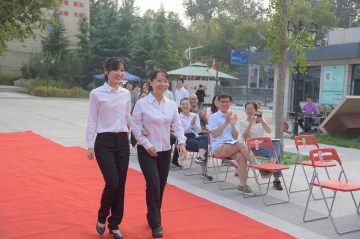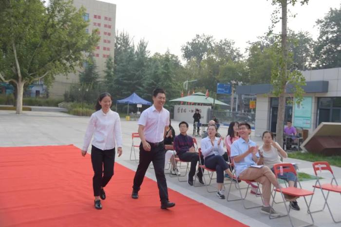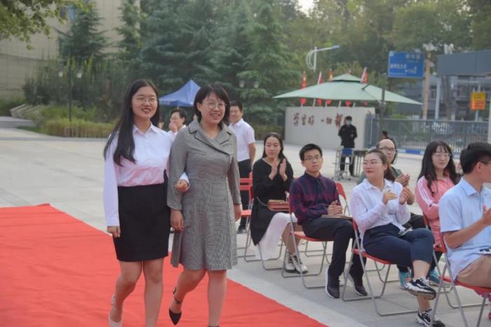 活动开始,一对对师徒携手,踩着红地毯进入会场。他们通过一个挥手、一丝微笑、一声问候向现场老师们传递着他们的喜悦,长长的红地毯,犹如一幅画卷,象征着师徒携手迈向美好的教育未来。