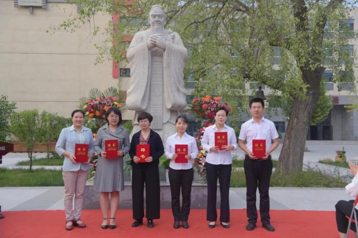 临圣贤之光辉,有古师之榜样。雨后金秋,老师们齐聚杏园,孔子像、银杏树、白杜树,园中一物一品,典雅精致,内涵丰富而深厚。为了加快新教师的成长步伐, 9月25日下午,我校举行了新教师拜师结对活动。参加本次活动的有党总支陈怀彦书记、樊茹副校长、教科处杨俊巧主任以及35岁以下的青年教师。杨主任宣布仪式开始,苏树杭老师主持仪式。
