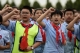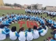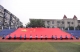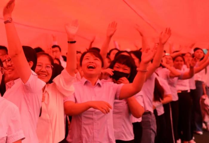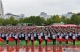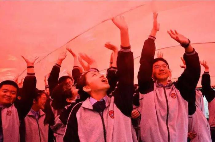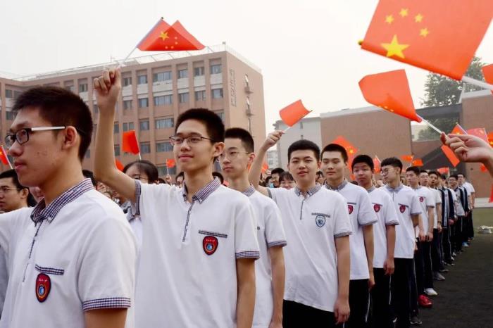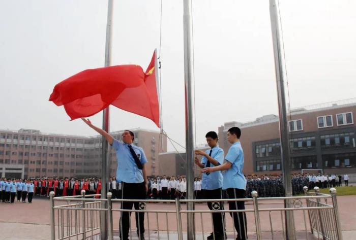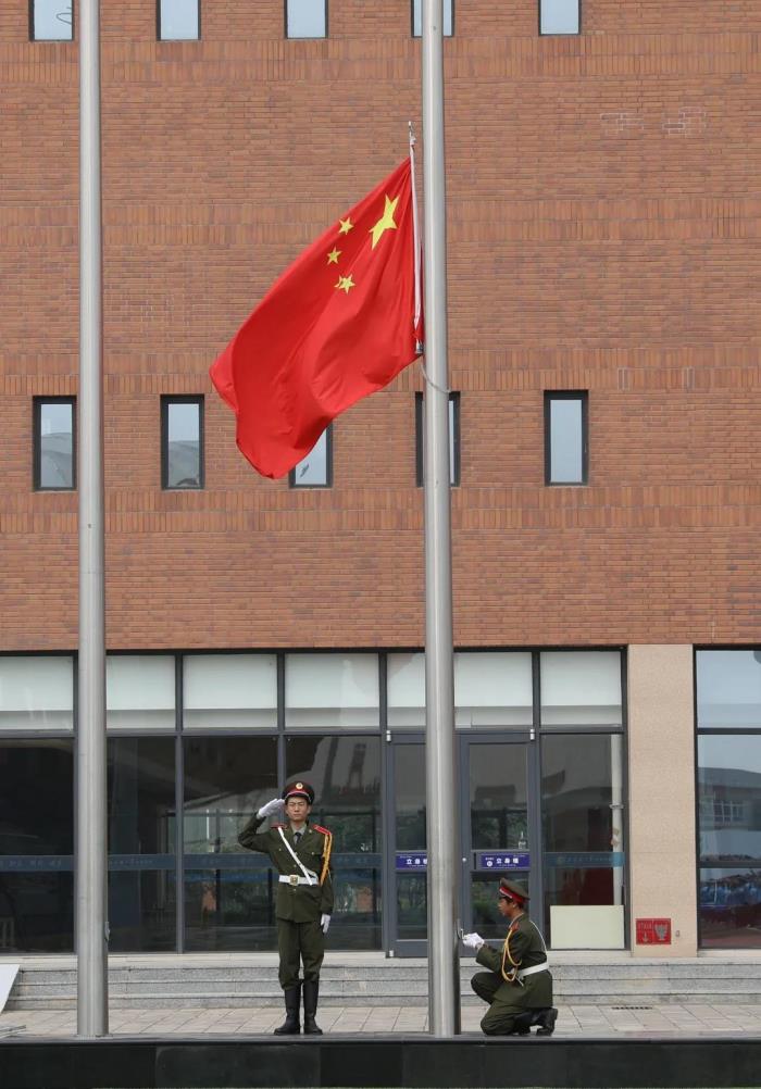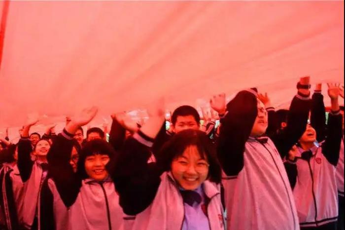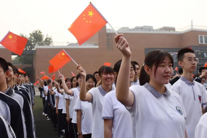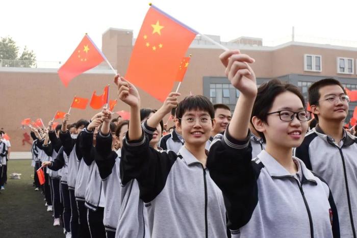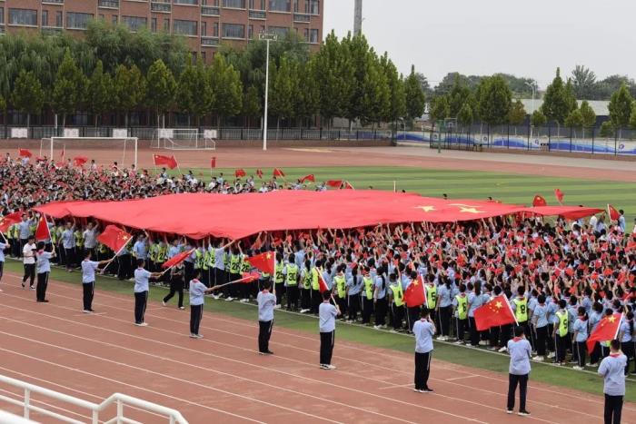 在巨幅国旗的见证下,南校区师生的豪言壮语响彻云霄