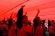 9月28日一早,二中的绿茵场就变成了红色海洋,全校师生齐聚这里,参加巨幅国旗传递仪式。升旗仪式后,高一19班刘馨苒、郭天烨、梁丹桐、崔凯乾四名同学表演诗朗诵《山河颂》,向祖国诉说心中的深情。在杨宁老师和张子栩同学《我和我的祖国》的歌声中,19米长的巨幅国旗由航空班学生高高擎起,在队伍中由北向南缓缓掠过,国旗拂过每个人的头顶,国旗所到之处,学生们伸出双臂轻轻推送,心中激荡着情感,脸上洋溢着笑容,他们用这种方式表达自己对于祖国、对于国旗的崇敬之情。