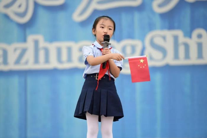 师生齐唱《我和我的祖国》,第一实验小学李梓垚同学领唱