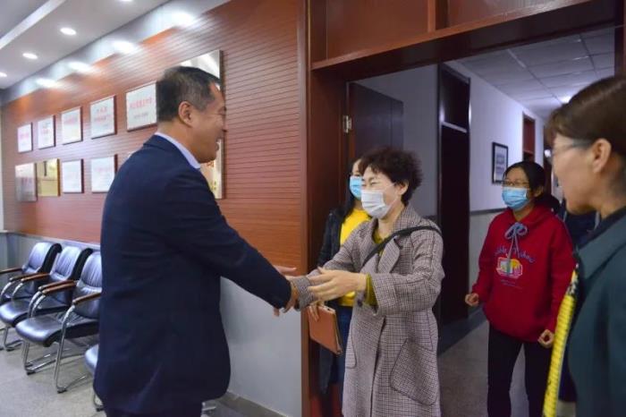 学校领导迎接老教师
