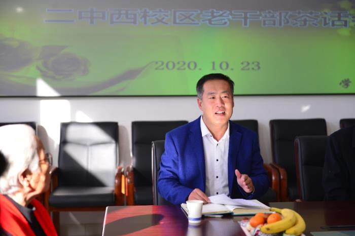 岁岁重阳,今又重阳。10月23日上午,我校会议室内热情洋溢,其乐融融。二中西校区敬老茶话会暨老干部艺术作品展正在隆重举行。离退休老同志、校领导、青年教师代表齐聚一堂, 欢度重阳佳节。工会查利主席主持了活动。