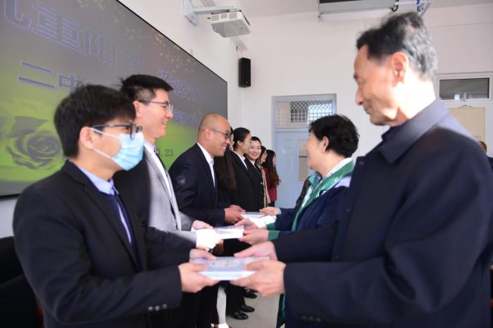 会上,孙福山校长向尊敬的老前辈们表达了最热烈的节日祝贺, 感谢他们的关心和支持,并介绍了学校的发展情况,以及所取得的显著成绩。在场的老同志为学校的发展感到十分欣喜。已退休的田桂伦老校长讲话,感怀岁月流逝,追忆往昔峥嵘岁月,并对青年教师送上美好的祝愿。随后,大家观看了老同志精湛的书画等艺术作品。其中,赵金复老师的15米长卷,恢弘地展示了抗疫期间广大医务工作者无私奉献、英勇奋战,人民群众众志成城、团结奋战的场景。学校领导向获奖同志颁发了获奖证书和纪念品
