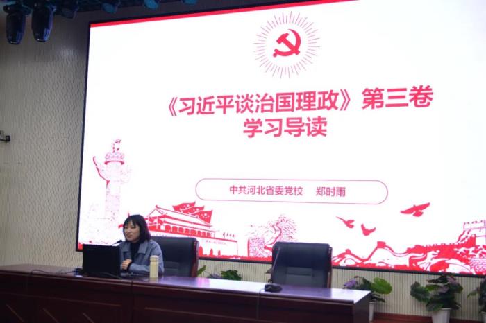 11月5日,我校党总支邀请省委党校郑时雨教授,在知源楼报告厅做《习近平谈治国理政》第三卷专题讲座。学校全体领导、教工参加活动。活动由党总支陈怀彦书记主持。