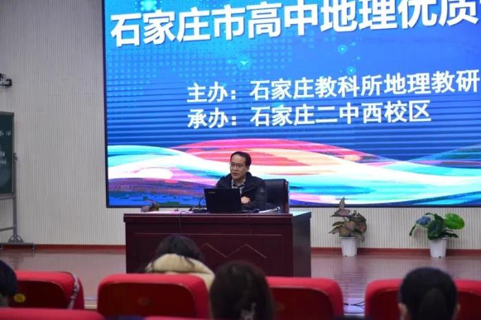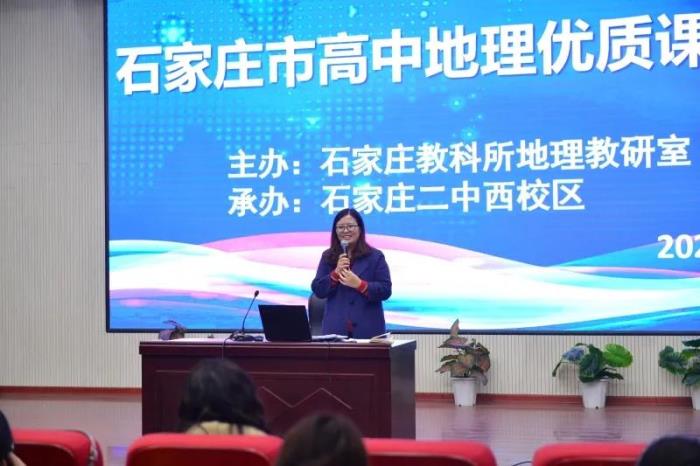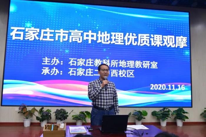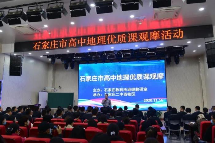 11月16日,石家庄市高中地理新教材、新课标优质课观摩活动在我校举行,石家庄市高中全体高一地理教师、高二年级地理备课组长、教研员工作坊成员等300余人参加了此次活动。河北省地理优质课评比一等奖获得者我校刘建炜老师、衡水中学于红老师做展评课。