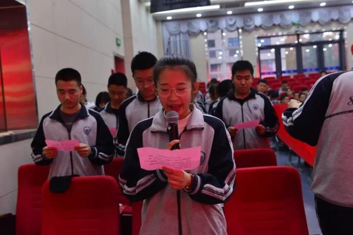 学生代表高三1班王琳茜同学发言并提出倡议。她说,我们要认真对待学习和考试,认真踏实,从每次考试中发现自己的不足,走向那个完美的自我。