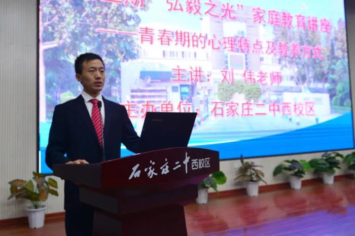 11月20日下午四点,第四期“弘毅之光”家庭教育讲座活动在知源楼报告厅举行。本次讲座特别邀请到了国家家庭教育高级指导师、国家二级心理咨询师、河北心育幸福家的刘伟老师。由刘老师为初二年级的家长们带来一场“青春期心里特点及教养方式”为主题的精彩讲座。活动由我校教育处副主任、初二年级主任吴世杰主持。