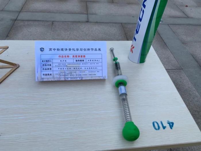 分会场的活动也精彩纷呈。我校学生的科技创新小制作、自制教具形式新颖,灵感爆棚,普遍受到参观者的好评。其中高一7班邵泽家同学制作的打点计时器,运用杠杆原理与单杠发动机原理使铅笔做往复运动,在纸带上留下痕迹,处理纸带可以求解速度和加速度,打点准确清晰,小车顺滑阻力小,过程简单有趣,特点鲜明. 该作品得到了所有参观者的赞赏,一举夺得本次创新小制作展一等奖第一名,体现了我校学生的实力,为西校区争得了荣誉。