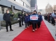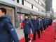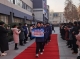 在老师们和家长们的掌声与祝福声中各支代表队高喊口号,昂首阔步迈上红毯,雄赳赳气昂昂走向赛场