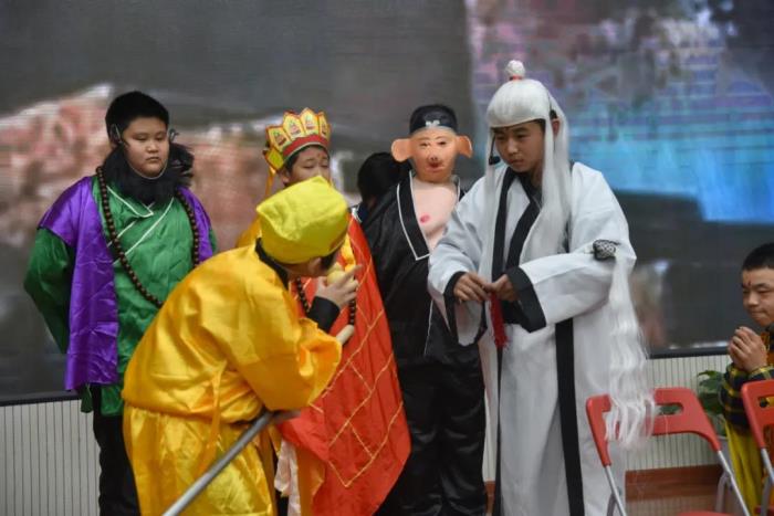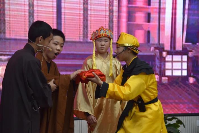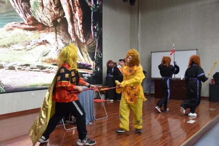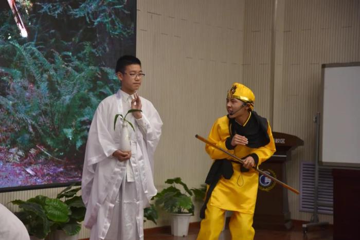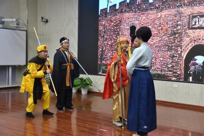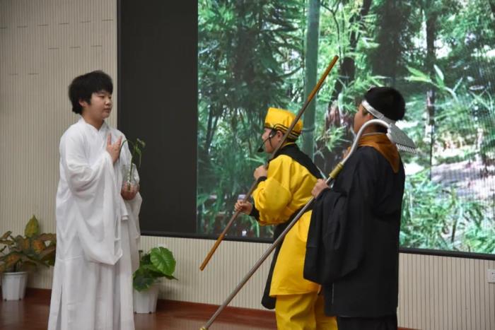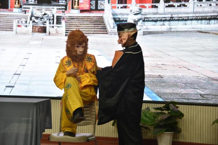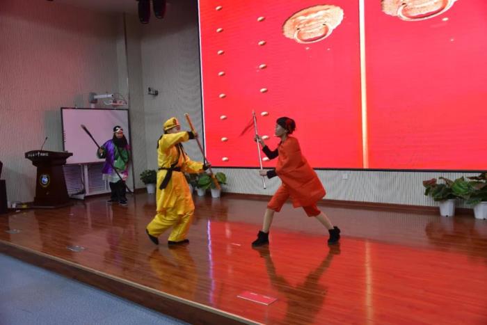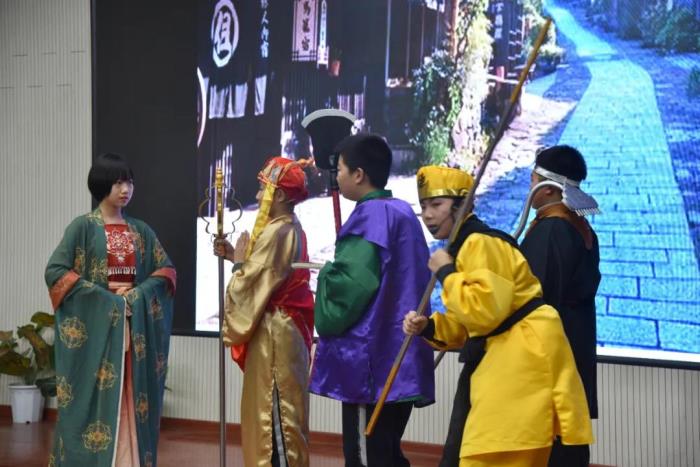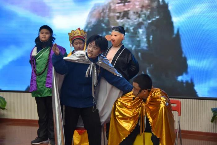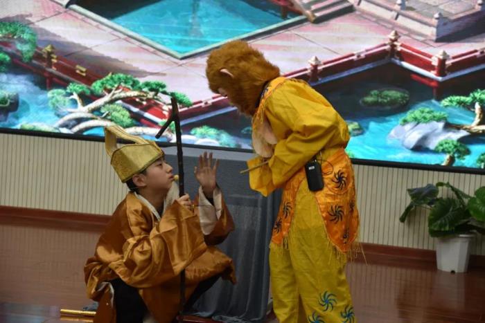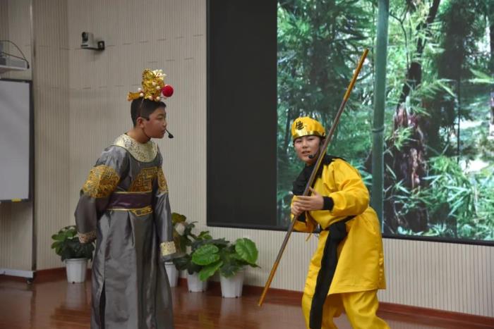 在语文组老师的指导下,本次比赛主题确定为我国经典名著小说——《西游记》,各班参赛选手认真打磨剧本,选取了《悟空智斗金银角》、《祸起观音院》、《金角银角大王》、《悟空大战红孩儿》、《偷吃人参果》、《女儿国》等6个剧目展开表演。比赛现场,选手们落落大方、情感充沛,感情基调贴合故事内容,人物形象表现丰满,故事情节或引人嬉笑,或发人深思,比赛现场掌声不断,好评如潮。
