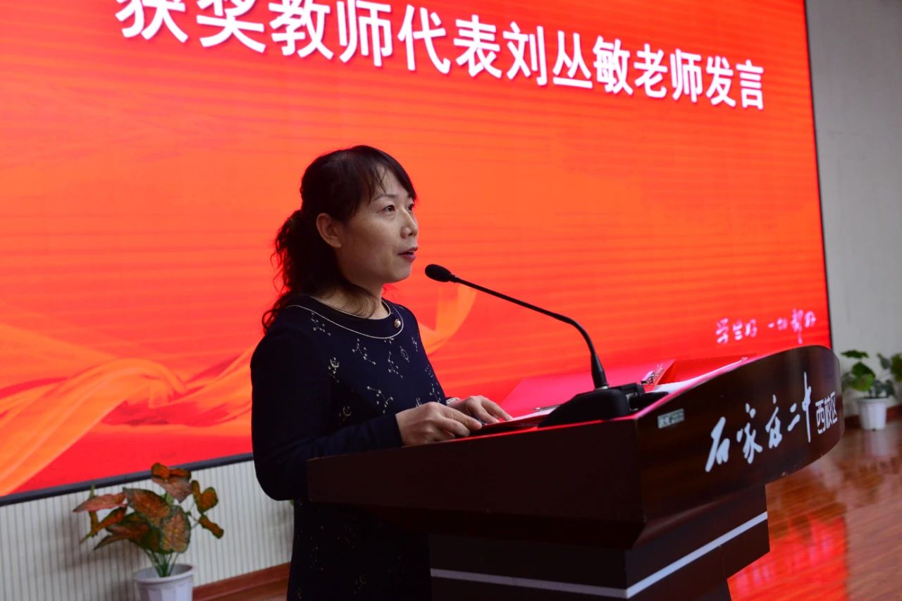 一年来我们携手并肩,辛勤耕耘,成果丰硕。张永泽副校长、张尚英副校长分别宣布了各类荣誉奖项。一项项荣誉称号的背后是对大家努力的肯定和实力的褒奖。鸾翔凤集栖桐枝,百卉含英秀杏坛。樊茹副校长宣布了对2020年在各方面做出突出贡献,表现出色优秀教工的表彰决定并颁奖。封帅老师代表党员先锋示范岗、刘丛敏老师代表高考功勋教师、张翠芳老师代表中考功勋教师、李宁老师代表联考标兵、王丽双老师代表优秀班主任分别发表了获奖感言。随后,学校召开第四届第五次教代会,查利主席做工会工作报告,张尚英副校长做学校财务报告,工会委员李艳英做提案工作说明。