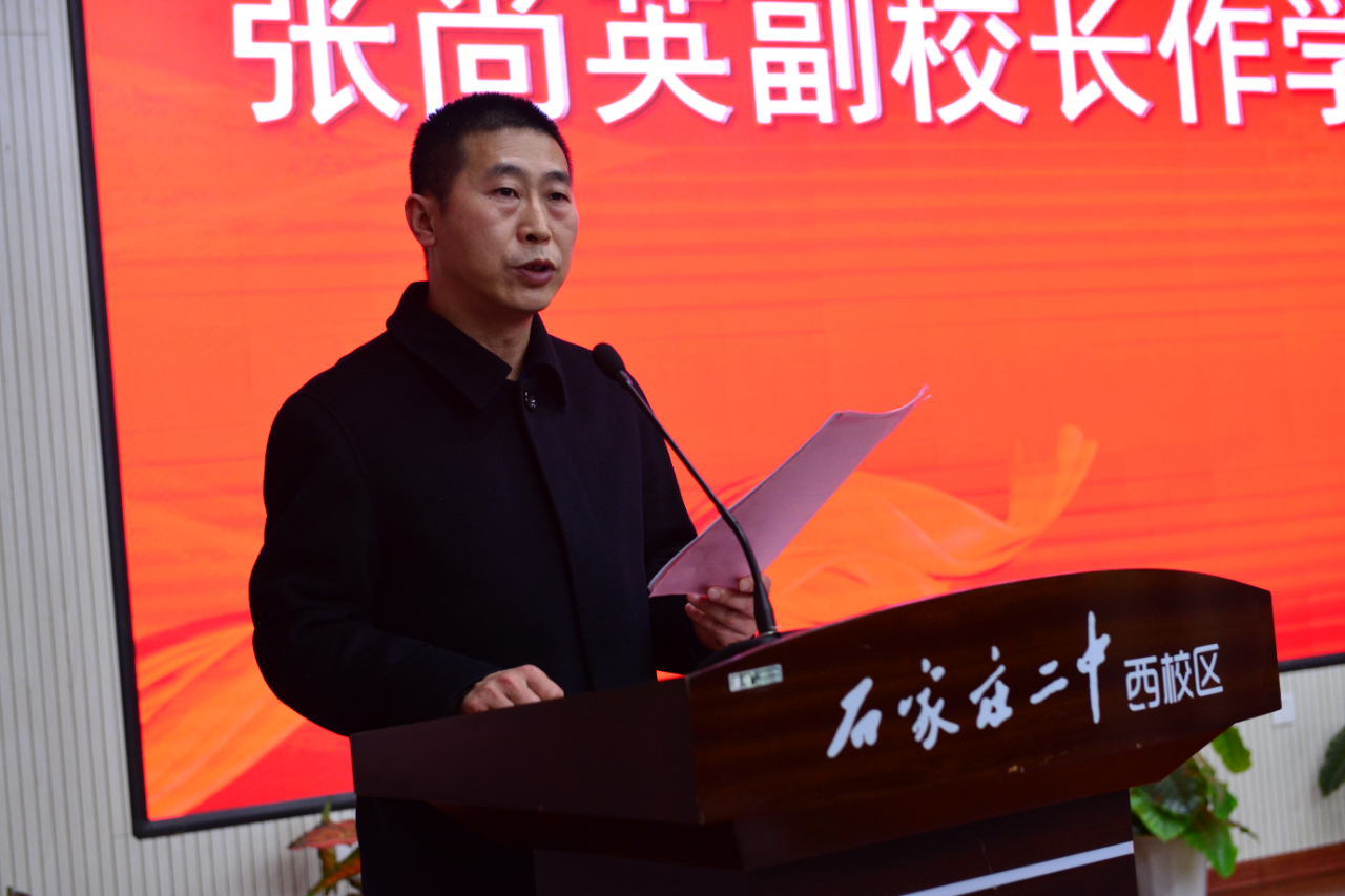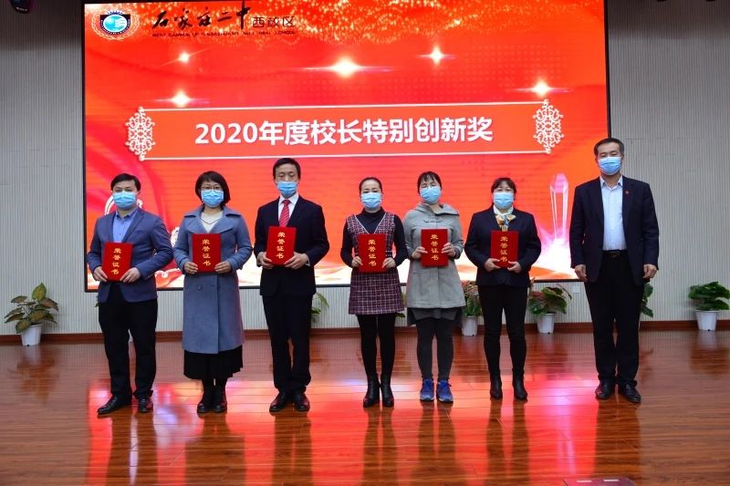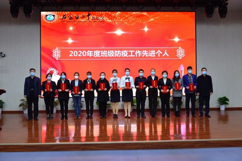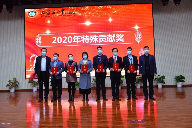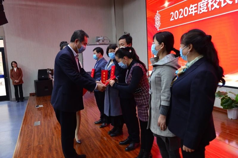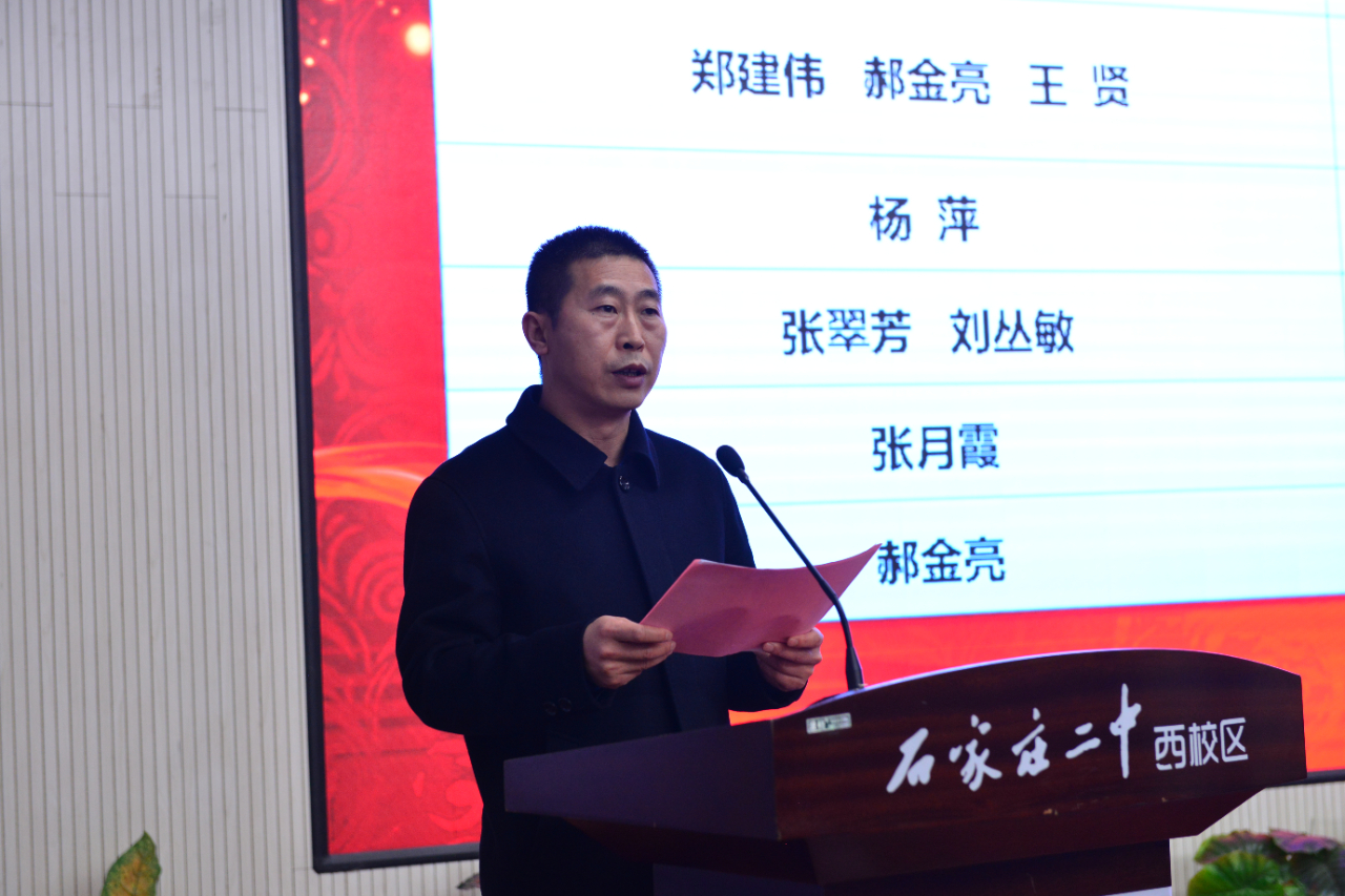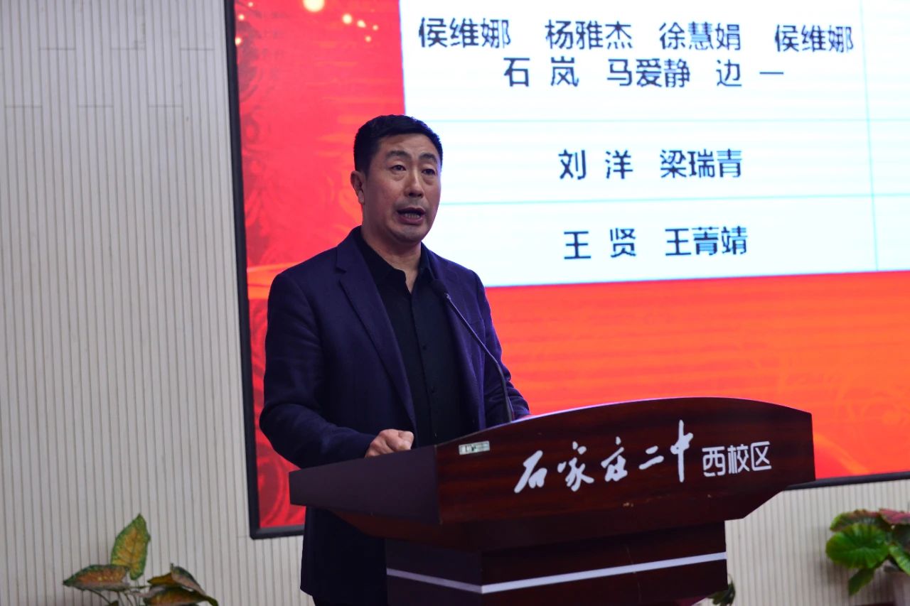 孙福山校长进行总结讲话,对学校一年来的工作进行了总结。在疫情防控常态化形势下,我校2020年依然取得重大突破。高中扩招增加一倍的情况下分数线不降反增,中高考成绩双双增长,继18、19年,再获石家庄市高中教学先进单位荣誉。省市评优课赛课成绩优异,高中地理获得省一等奖第一名。我校还获得石家庄市文明校园、优秀基层党组织、疫情防控先进基层党组织、石家庄市教科研先进单位、石家庄市中小学宪法学习优秀组织单位、石家庄市财务工作先进单位等荣誉称号。