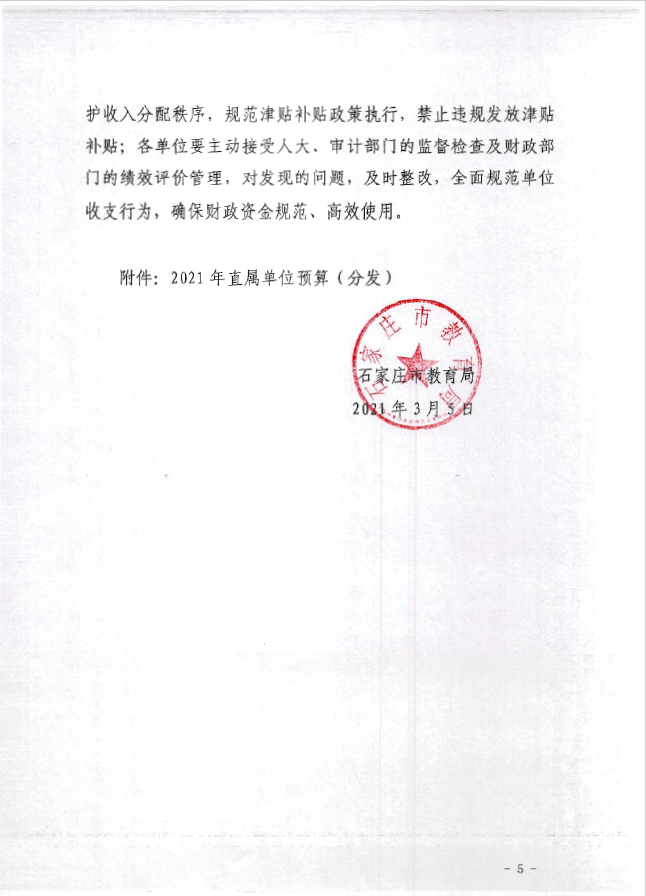 石家庄市第五中学2021年预算公开
