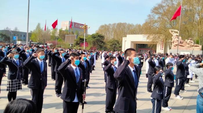 二中西师生代表石家庄市共青团员参加省会各界“清明祭英烈”活动