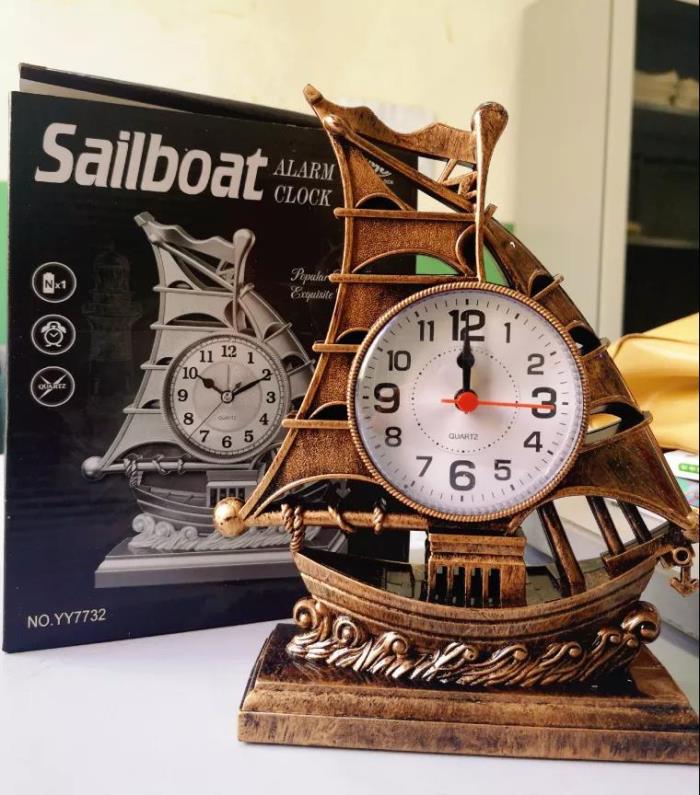 闹钟:一台帆船样式的座钟,兼具报时与闹铃的功能。希望拍到这台闹钟的同学能意识到时间的宝贵,养成良好的时间观念,珍惜、利用好一点一滴的时光。另外这台钟的外形也寓意着祝福同学们扬帆起航,坚定目标,直达梦想的彼岸。