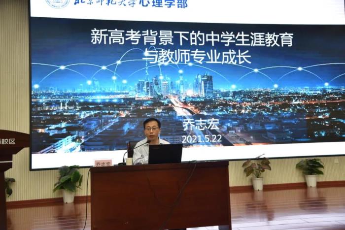 随后,乔志宏教授做专题讲座,讲座以“新高考背景下的中学生涯教育与教师专业发展”为题。