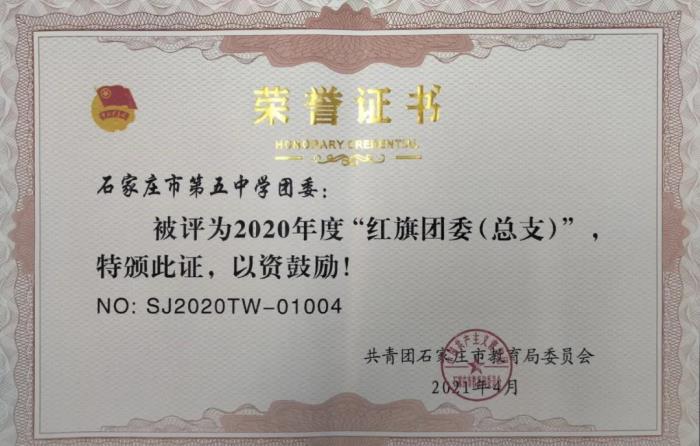 二中西校区校团委被评为2020年度石家庄市红旗团委!