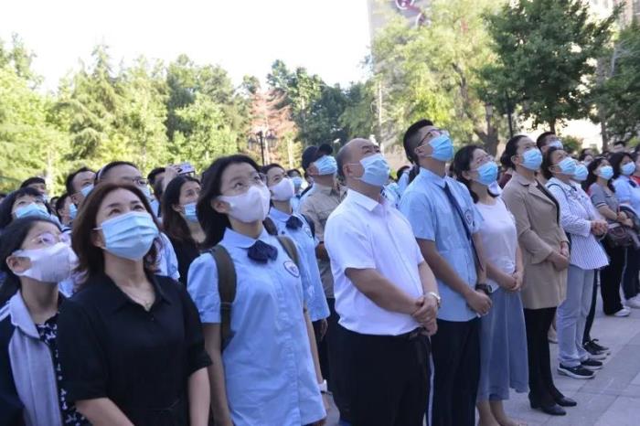 学校全体领导、老师、家长和同学们一起齐聚校园