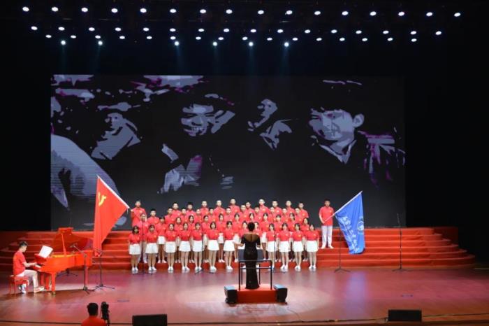 在比赛中,我校合唱团演唱了《游击队之歌》和《我的中国心•芳华•红旗飘飘》,用积极饱满、高亢嘹亮的歌声赞美伟大的中国共产党,用歌声诉说着对党的热爱,对祖国的赞美之情,赢得了评委和观众的热烈掌声。