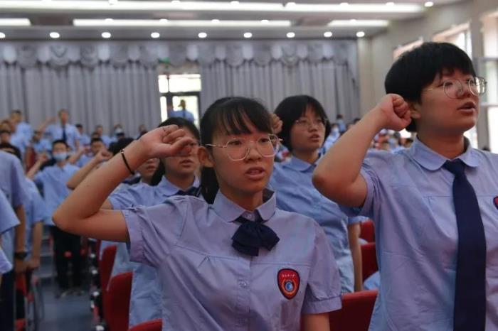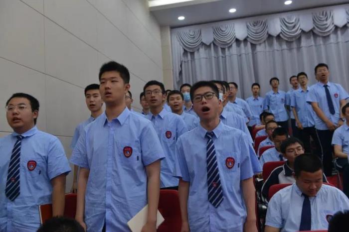 随后,孙校长为各班授予高三班牌,手握班牌,同学们就要开始新的征程,要用新的风貌,新的奋斗,去摘取新的硕果。各班班主任带领同学们宣誓, 用呐喊告别昨日的失败和彷徨,用呐喊迸发对高三的激情与渴望。樊校长副校长讲话,勉励同学们树立高远的志向,为民族复兴贡献自己的力量。在学习时要掌握正确的学习方法,遵循科学的规律,注重思考与总结,提升思维能力。最后, 全体领导、师生起立,集体宣誓,再一次为高三同学呐喊助威,吹响冲刺的号角。