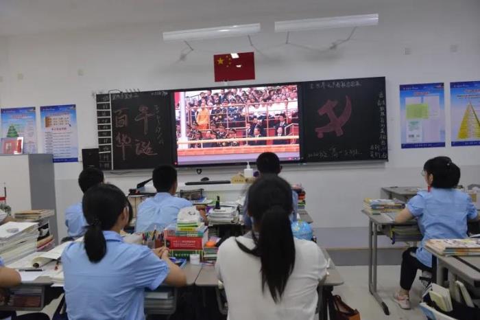 同时,我校学生也在教室内观看了直播,学习了党史的重要一课。
