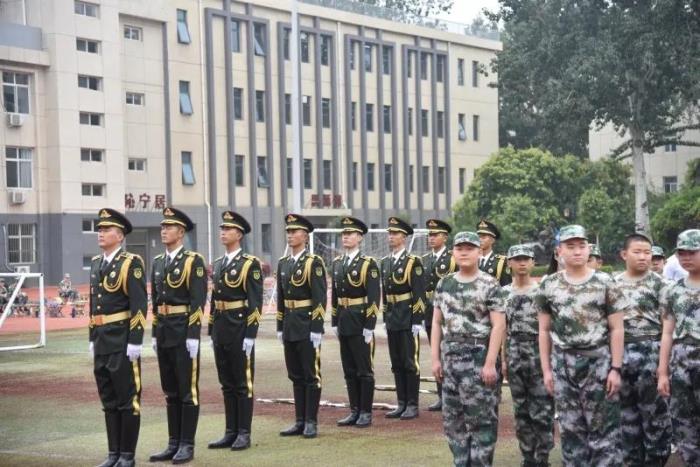 9月4日上午,雨后校园,秋风送爽, 在庄重的国歌声中,石家庄二中西校区军训暨省理特训营开营仪式正式开始。