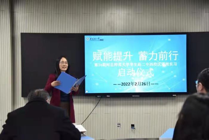 2月26日,石家庄二中西校区举行了主题为“赋能提升,蓄力前行”的顶岗实习启动仪式。学校从学习赋能,实战赋能和生活赋能三个方面详细制定了了未来实习教师的培养计划。此后实习生们在学校领导的引导下组建读书会,养成阅读好习惯;进行思辨交流,定期分享思想动态,共同成长,横向互助。 学校为每位定岗教师配备了一名班主任工作的指导教师、一名教学指导老师,同时学校为每名实习教师聘任校级领导或科室主任为成长指导师。经指导老师的悉心指导,我校对定岗实习教师进行了模拟课堂演练,并进行了评课活动。