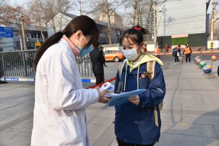 2月28日,按照全市统一安排,二中西校区正式开学。同学们按照要求,陆续间隔通过划定的消毒测温通道,进入校园。安保人员及值班老师分工就位,密切注视着体温监测数据。学校完善的防疫措施,还有专门帮助接运住宿行李的贴心志愿服务者,让家长和学生感觉到既暖心又放心。