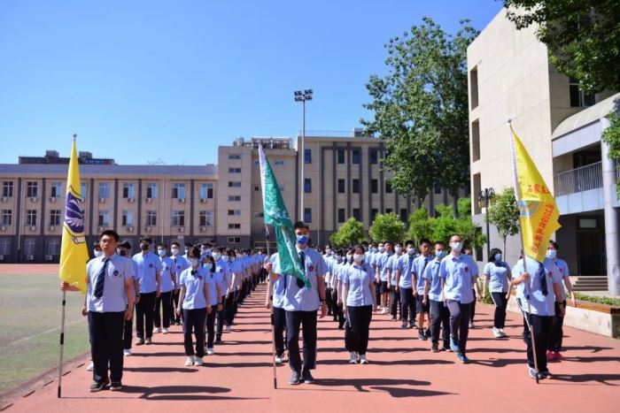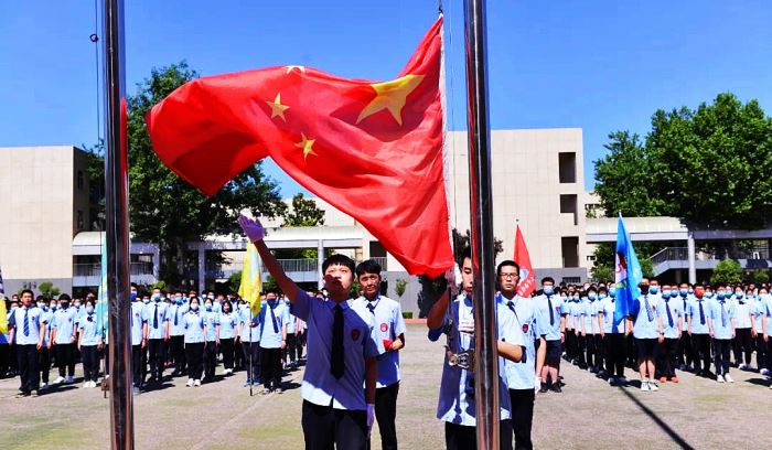 在全体师生热烈的掌声和响亮的口号声中,高三学子昂首阔步,走向操场中央,接受大家的祝福和鼓励。 雄壮的国歌响起,同学们仰望冉冉升起的国旗,心潮澎湃。母校为你们壮行,为你们祝福,相信你们必将成为祖国的栋梁之材。