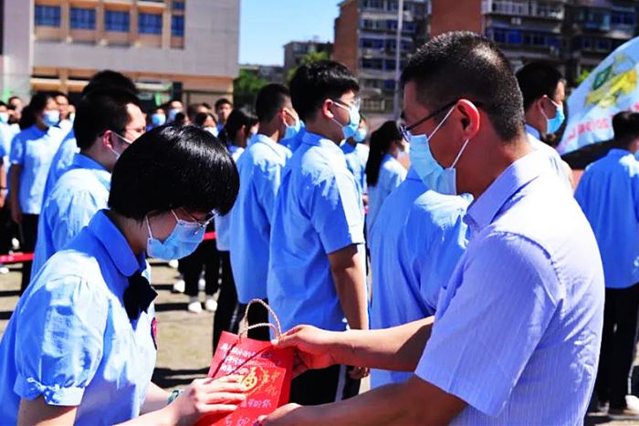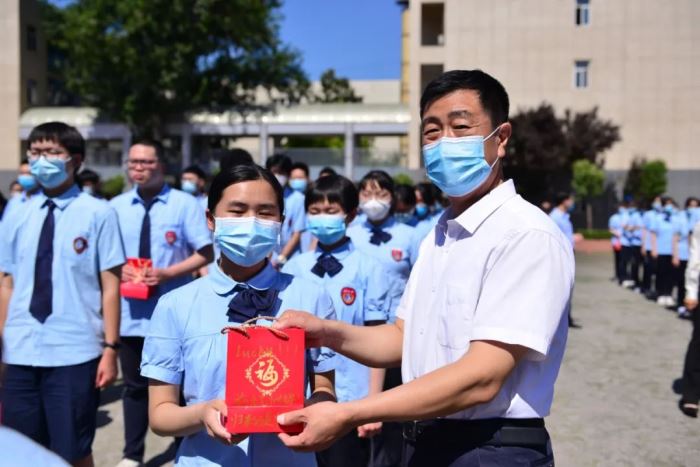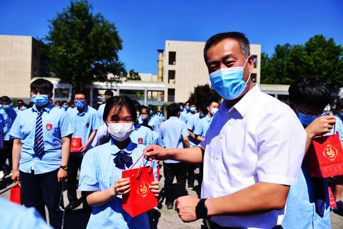 孙福山校长做动员讲话。他说,我们将用努力与汗水,热情与力量在这一方试卷上郑重的写下对未来的执着与想象,这应该是对自己的生命许下的庄严承诺。在高考中,要有必胜的信心,淡定的平常心,精致的细心,坚定的恒心。无论你走到什么地方,母校都会牵挂着你,老师们都永远祝福你,我们都会在熟悉的校园等你!