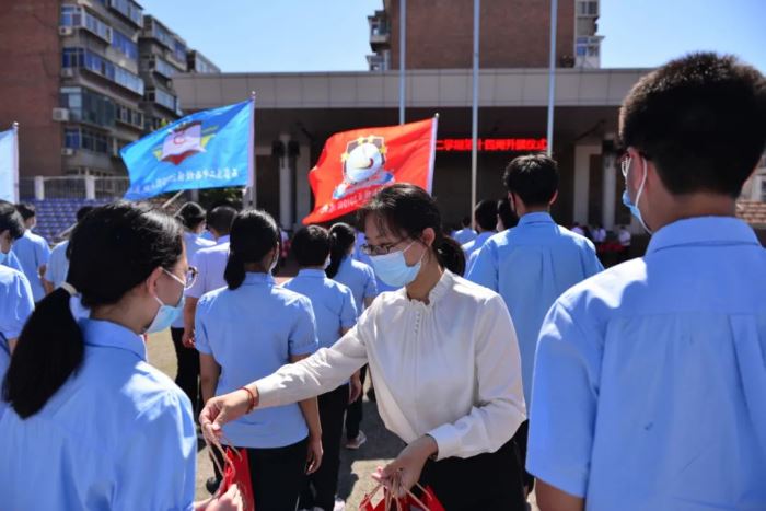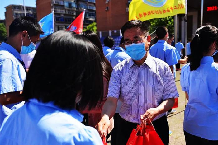 为学子送上礼物和 祝福