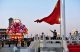 我国每逢国庆佳节,各企事业单位都会挂起灯笼或横幅,用“欢度国庆”等标语来庆祝国庆。广场上则摆放着标语字样的盆景和氢气球,用欢乐的气氛来迎接国庆。