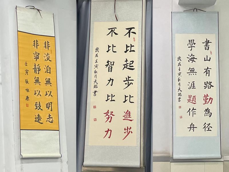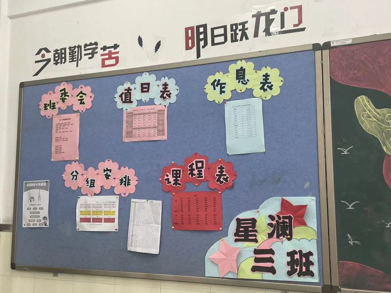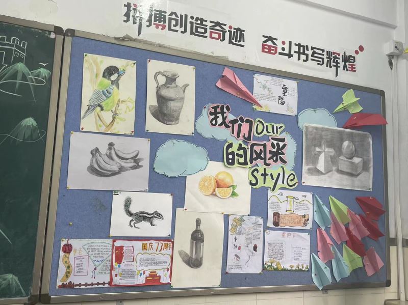 近期,初一年级各班进行了班级文化的设计,同学们充分利用黑板报、软板设计和书画展示等形式,大多围绕爱国、劝学、励志等主题展开,还有一些为实用小技巧。软板设计各不相同,各班尽展风才,有关于绘画展示的,还有展示学生风采的照片墙,精心布置,创意无限。