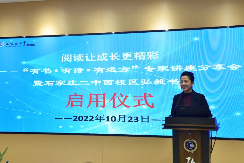 秋天的校园,是灿烂的、 成熟的、同时也是充满收获的。10月23日上午,石家庄二中西校区隆重举行 “阅读让成长更精彩”专家读书分享会暨弘毅书院启用仪式,活动通过现场和线上网络直播相结合的形式进行,此次特别邀请到了 人民网河北分公司副总经理杨伟华、 河北省教育科学研究院义务教育研究室主任李学红、 河北广播电视台主持人、主任播音员 任滟俐、 文化学者•诗人书家王律等知名专家做精彩分享, 另有河北广播电视台少儿科教频道副总监李遐、河北广播电视台少儿科教频道《国风少年》节目组负责人聂伊凡、河北省茶艺师协会会长郭耿珠、石家庄第一实验幼儿园徐书莉主任 等嘉宾莅 临参会。