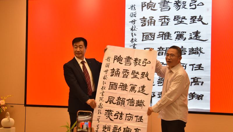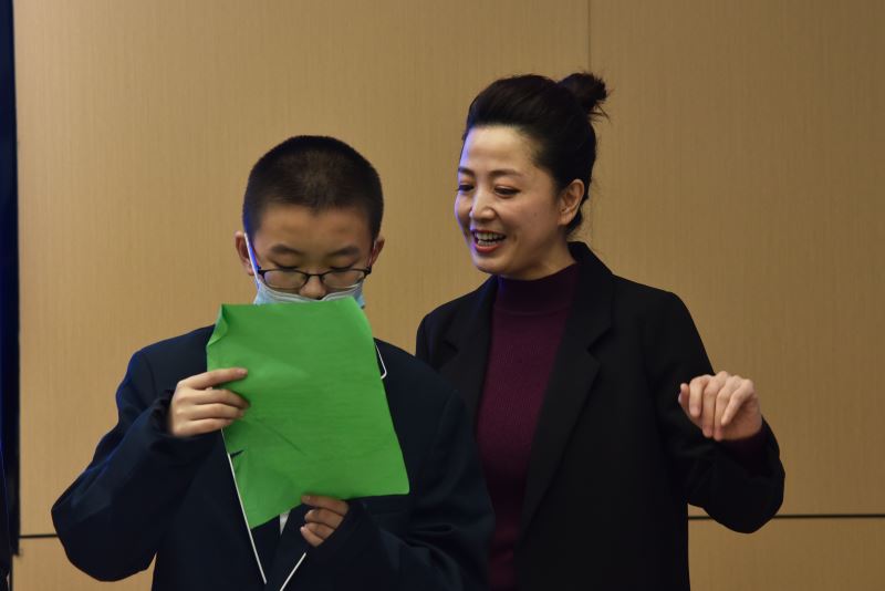 王老师是我校九十年代毕业生,被评为河北省首届十佳书香家庭, 感动省城十大人物。现场王老师题赠藏头诗 祝贺“弘毅书院”启用。