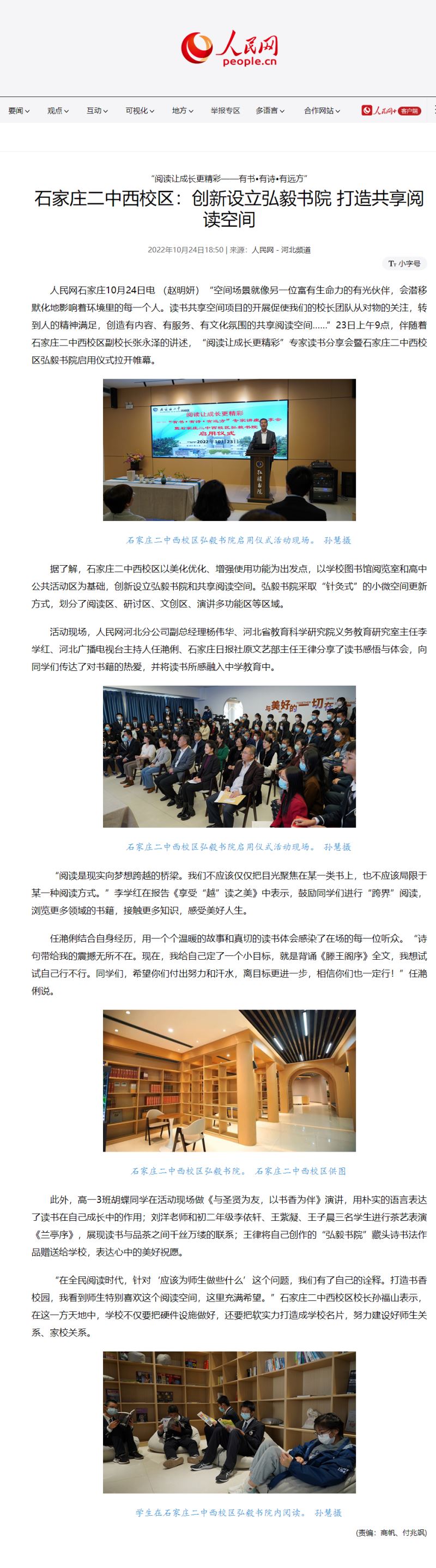 石家庄二中西校区:创新设立弘毅书院 打造共享阅读空间 (people.com.cn)