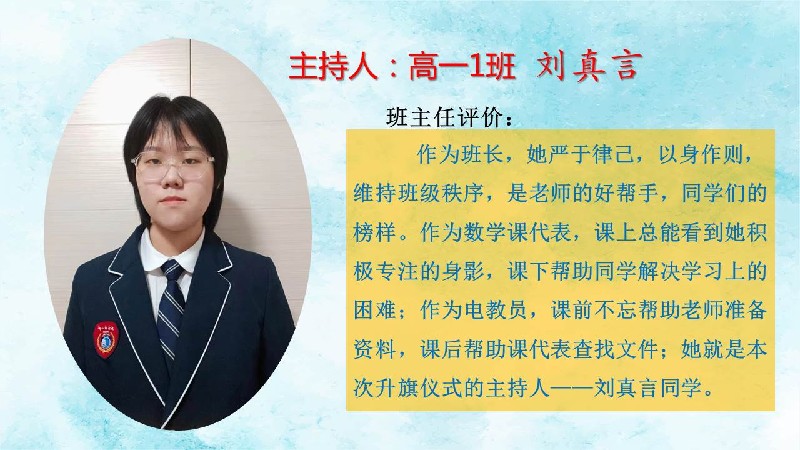 高一1班刘欣睿同学升旗演讲