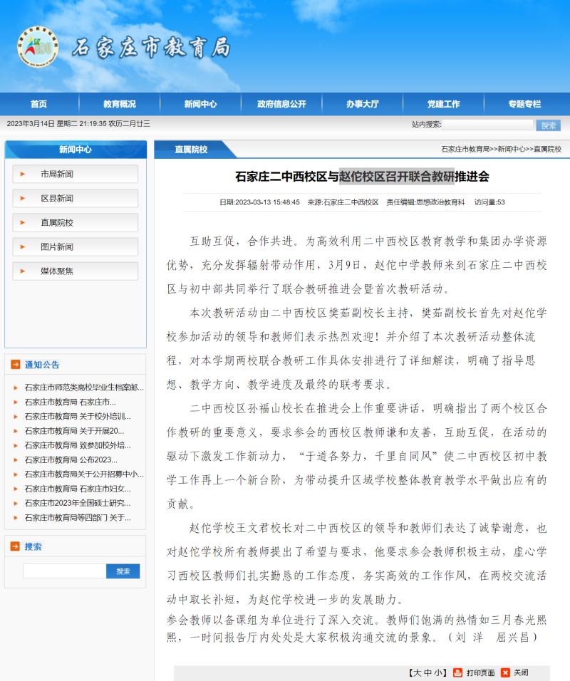 河北新闻网 石家庄教育局官网 20230313